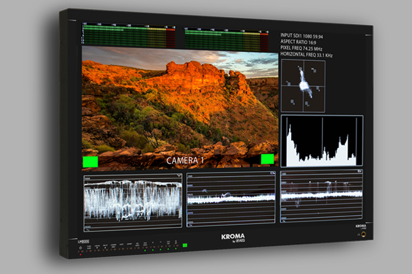 KROMA by AEQ Monitors includes a wide range of High Quality products covering any Broadcast application up to high performing 10 bits processing and UHD resolution supporting HDR with different curves. Monitor color calibration by connection to a color probe and Lightillusion control software version specifically designed for Kroma. Single, Dual or Triple Displays systems as well as Single View or Quad systems. Monitors offer a wide selection of video inputs and integrated tools for signal and quality control like WFM, vectorscope, VU-meters, IMD, etc.
